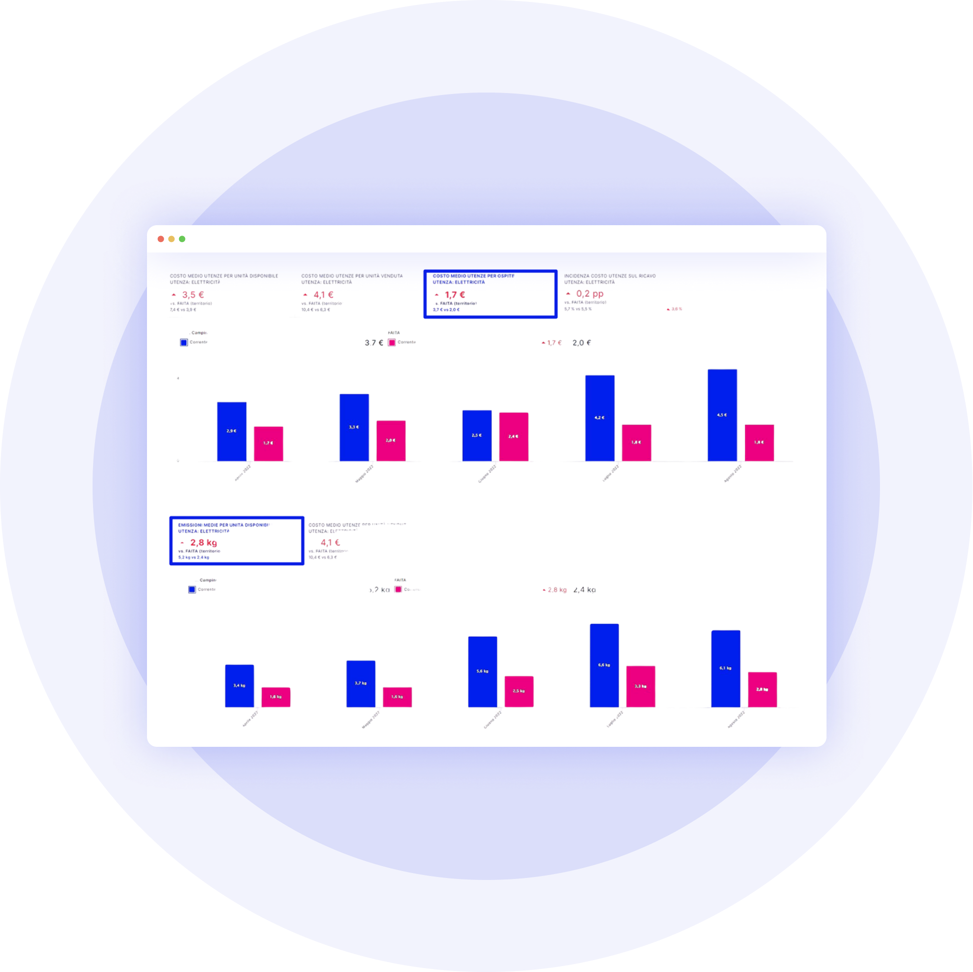 Attraverso la segmentazione dei costi e il calcolo automatico dell’impronta di carbonio — che esclude i contributi da fonti rinnovabili — potrai misurare la reale efficienza della tua struttura rispetto alla media territoriale.