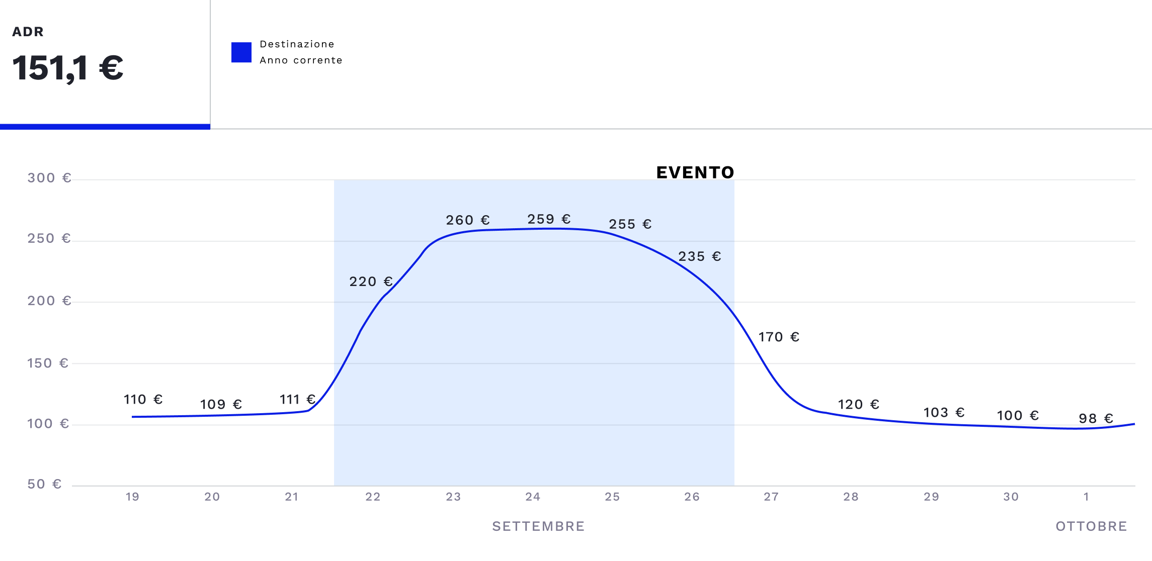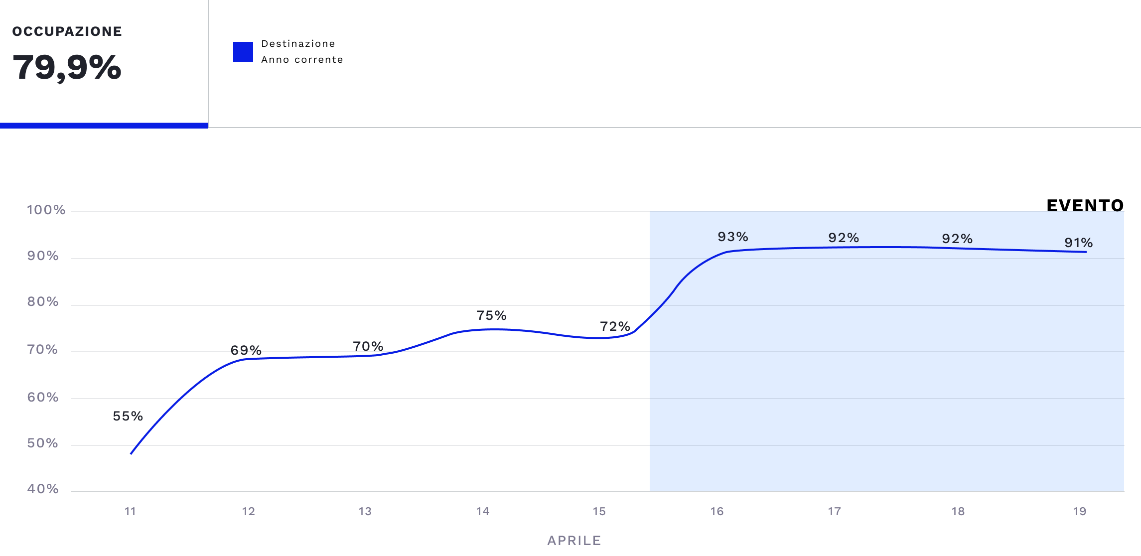 Monitor the correlation between occupancy, total revenue, and average revenue during an event at your destination.