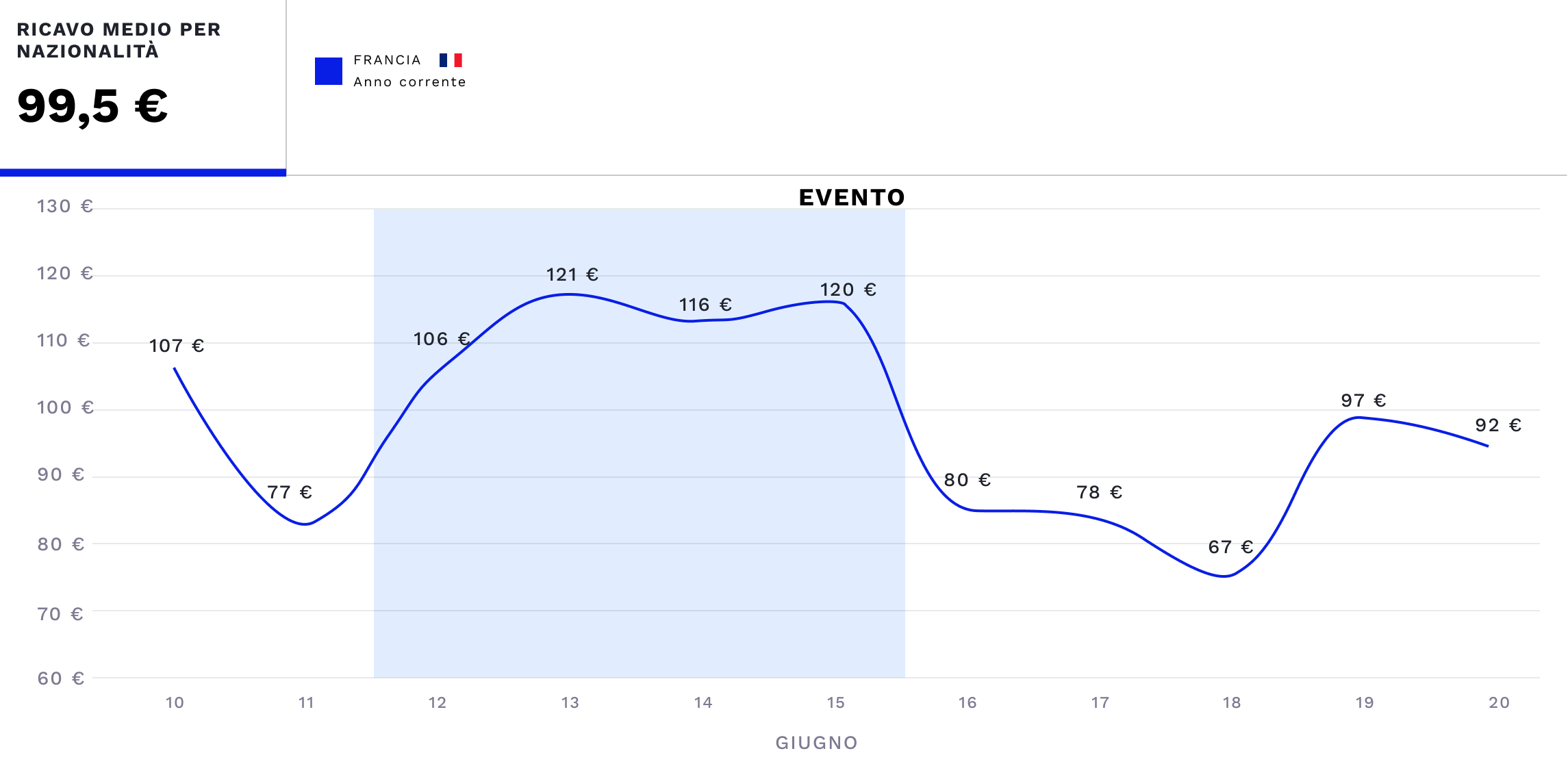 Measure the average revenue generated by bookings in your territory for specific guest nationalities, relating them to an event in your tourist location.