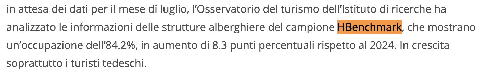 July's results were good (average occupancy 84.2%, an increase of +8.3 percentage points compared to 2024) and so were the data acquired for August (as of 31 July, acquired occupancy stands at 57.9%, +5.2 points compared to the same date last year).