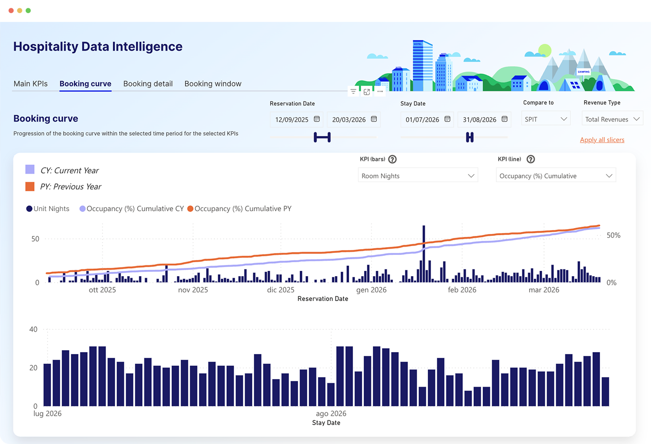 O-Intelligence It is the tool designed for Camping Villages, Glamping sites and Tourist Villages that want to stop reacting and start anticipating. It analyses the evolution of demand, prices, and open-air flows over time, helping you to read the weak signals of the market and make strategic decisions when they truly matter.