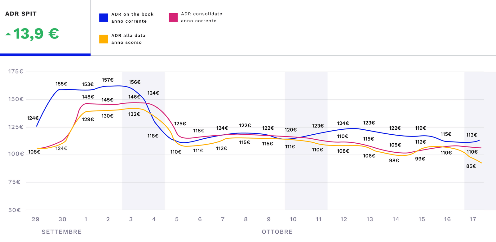 Grazie alla funzionalità SPIT è possibile confrontare il proprio ADR rispetto alla fotografia registrata l’anno precedente alla stessa data e allo storico consolidato.