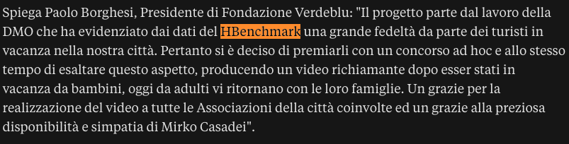 La DMO di Bellaria e Igea Marina grazie all’analisi dei dati HBenchmark ha individuato una parte del suo mercato fidelizzato al territorio, in quest’ottica è nato il concorso per far rivivere alle famiglie i momenti speciali passati nella destinazione.
