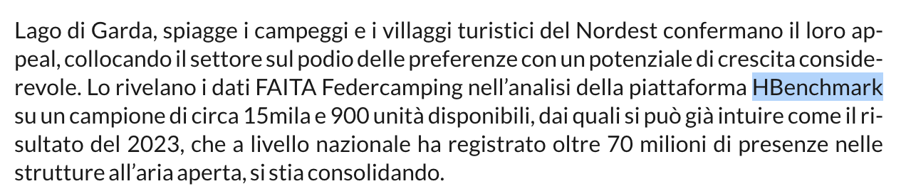 Grazie al campione di circa 15mila e 900 unità disponibili, i dati FAITA Federcamping – HBenchmark confermano il grande interesse dei turisti per il mondo Open Air.