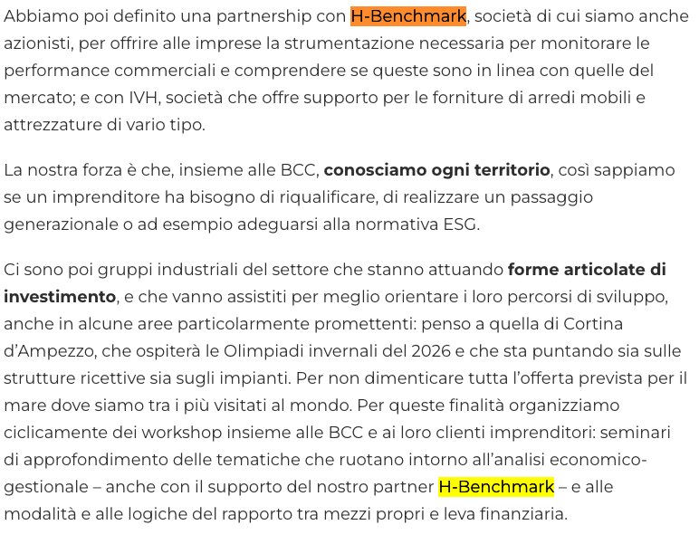 Ecco perché ha scelto ed è al fianco di HBenchmark, innovativa piattaforma di hospitality data intelligence, fondamentale per l’analisi – storica e futura – in tempo reale delle informazioni di performance, essenziale per la pianificazione commerciale, per aumentare fatturato e revpar delle strutture ricettive.