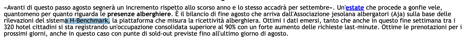 Il bilancio di fine agosto che arriva dall’Associazione jesolana albergatori (Aja) in relazione alle analisi di HBenchmark mostrano ottimi risultati.