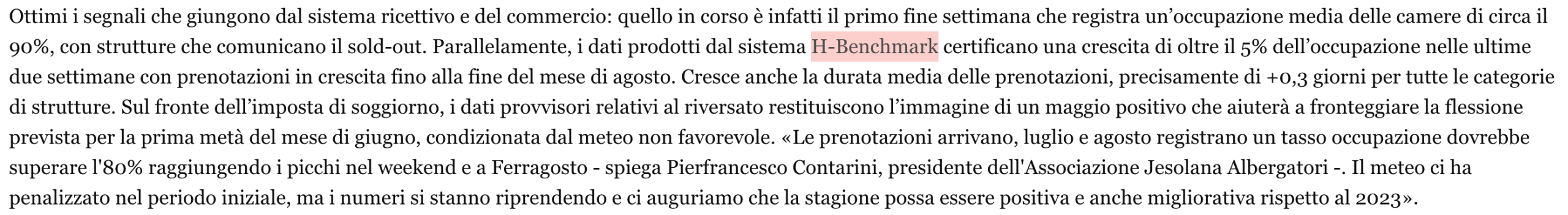 Il weekend appena trascorso ha registrato quasi il sold out come previsto dai dati HBenchmark (ca 90% di occupazione acquisita la settimana scorsa).