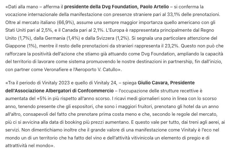 Vinitaly registra il tutto esaurito ancora prima del via all’ultima giornata fieristica: 92,1% è l’occupazione media registrata a Verona (+ 5,1% rispetto all’edizione 2023).