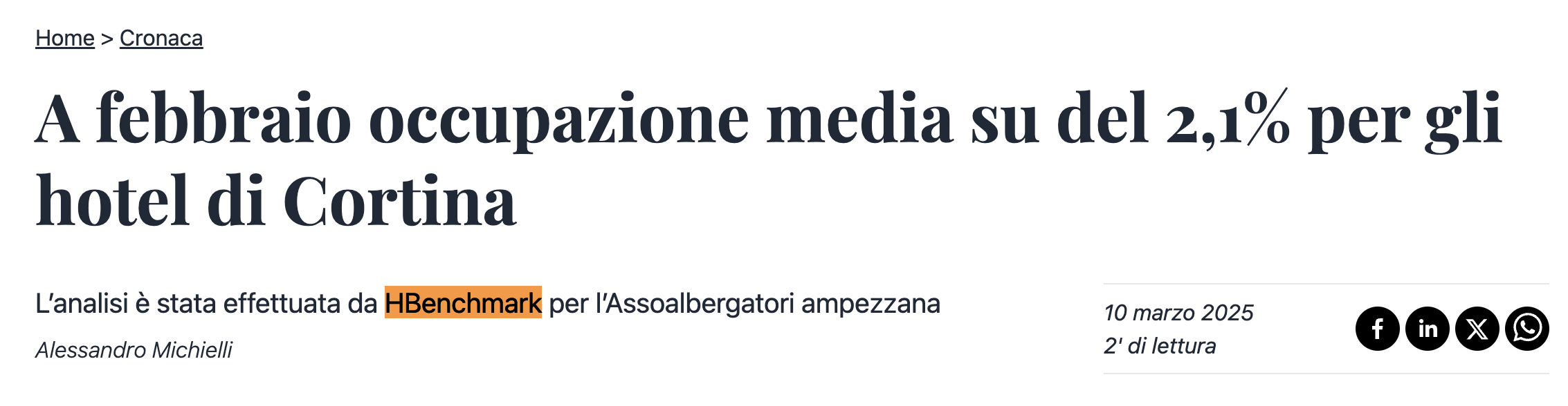 I dati HBenchmark forniti all’Associazione Albergatori di Cortina d’Ampezzo per il mese di febbraio 2025 confermano il trend positivo registrato anche a dicembre e a gennaio.