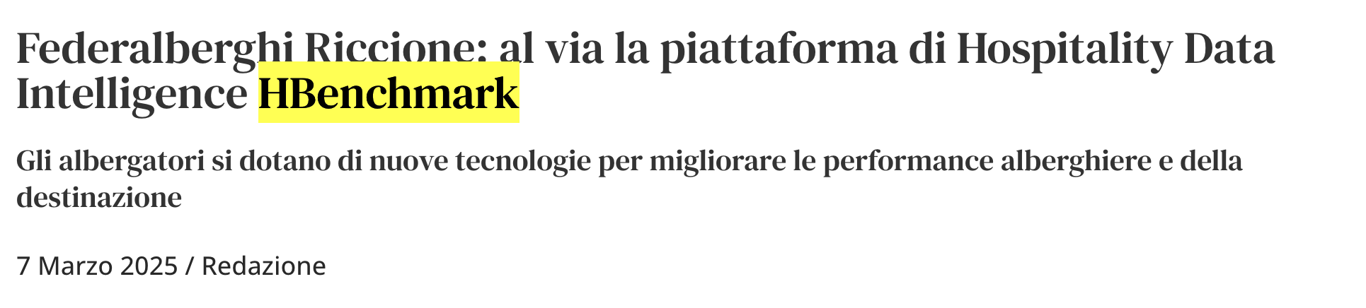 Federalberghi Riccione annuncia l’introduzione della piattaforma di Hospitality Data Intelligence di HBenchmark per supportare gli albergatori nell’analisi evoluta dei dati funzionale ad ottimizzare le proprie strategie tariffarie e di marketing, migliorando la redditività.