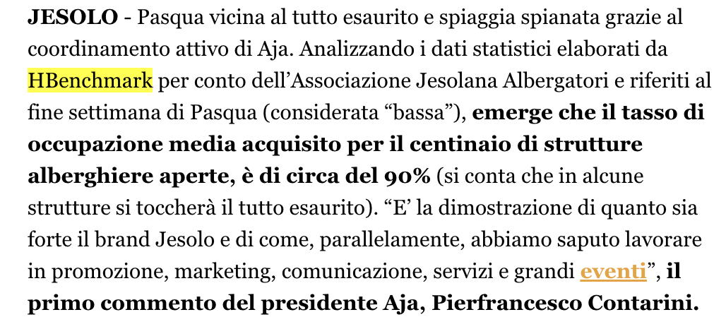 I dati elaborati da HBenchmark per Aja – Associazione Jesolana Albergatori evidenziano come la destinazione costiera mostri una performance di rilievo con un’occupazione delle strutture alberghiere aperte che tocca il 90% già nelle rilevazioni previsionali, riflettendo l’efficacia degli eventi programmati e la capacità attrattiva del litorale anche in bassa stagione.